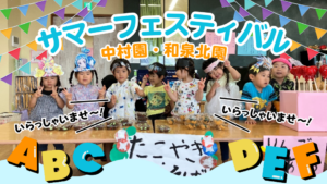 三福グループが運営する「三福プリスクール保育園」(中村園・和泉北園)で子どもたちが主役の「サマーフェスティバル」を開催しました。