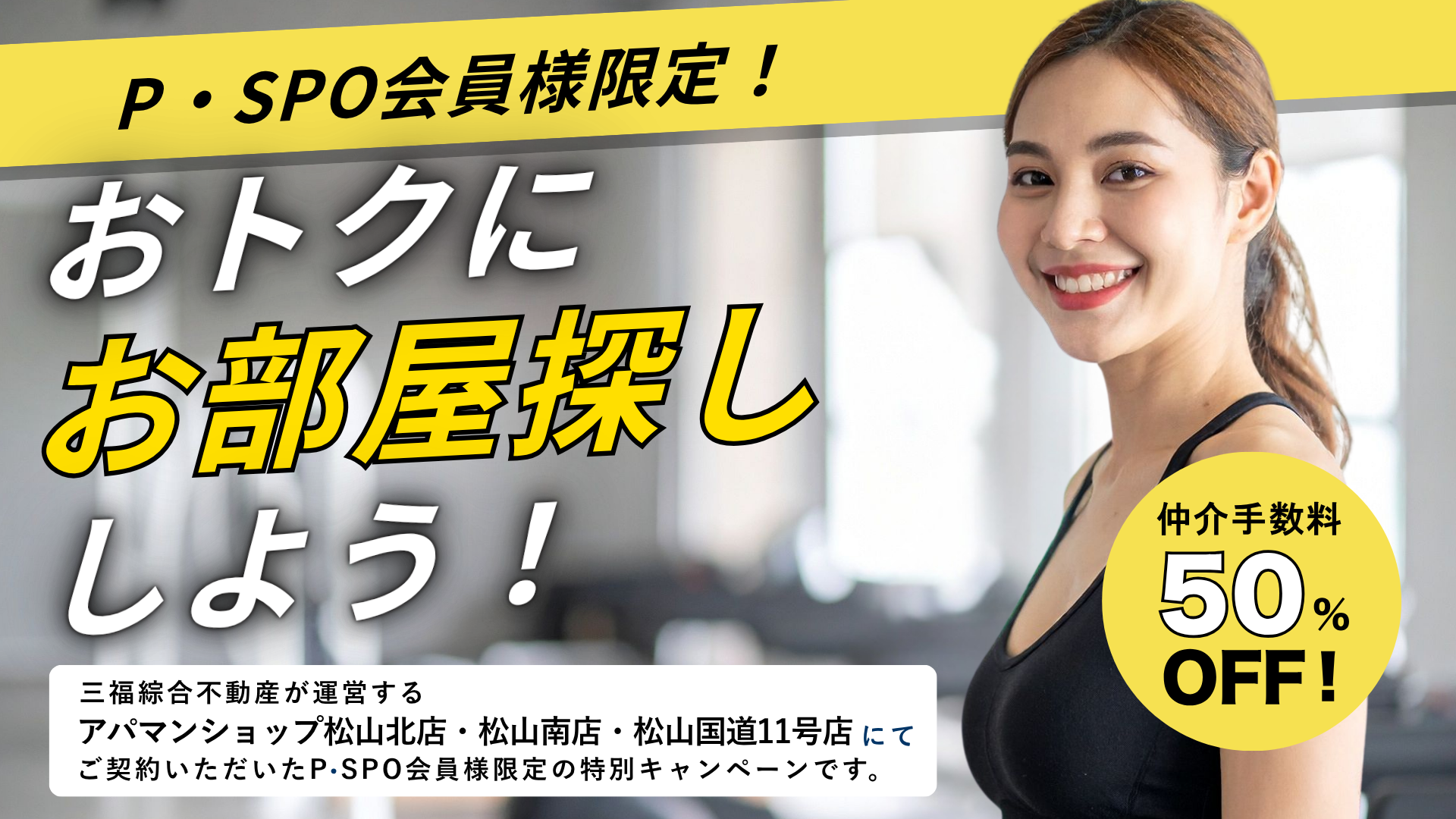 【P・SPO会員限定】三福綜合不動産、松山の賃貸マンション仲介手数料50%OFFキャンペーンを開始