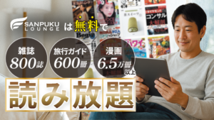 ラウンジに設置のタブレットを起動するだけで、雑誌800誌以上・マンガ6万冊以上・旅行ガイド600冊以上を自由に閲覧可能に。