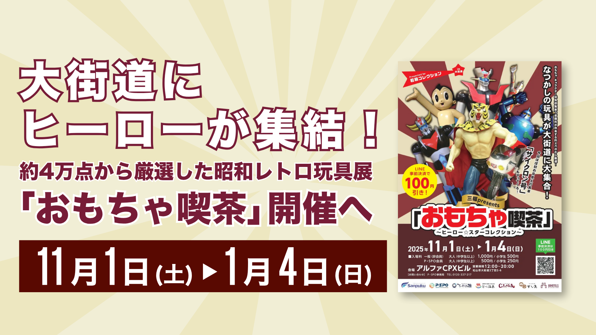 大街道に“ヒーロー”が集結! 約4万点から厳選した昭和レトロ玩具展「おもちゃ喫茶」開催へ