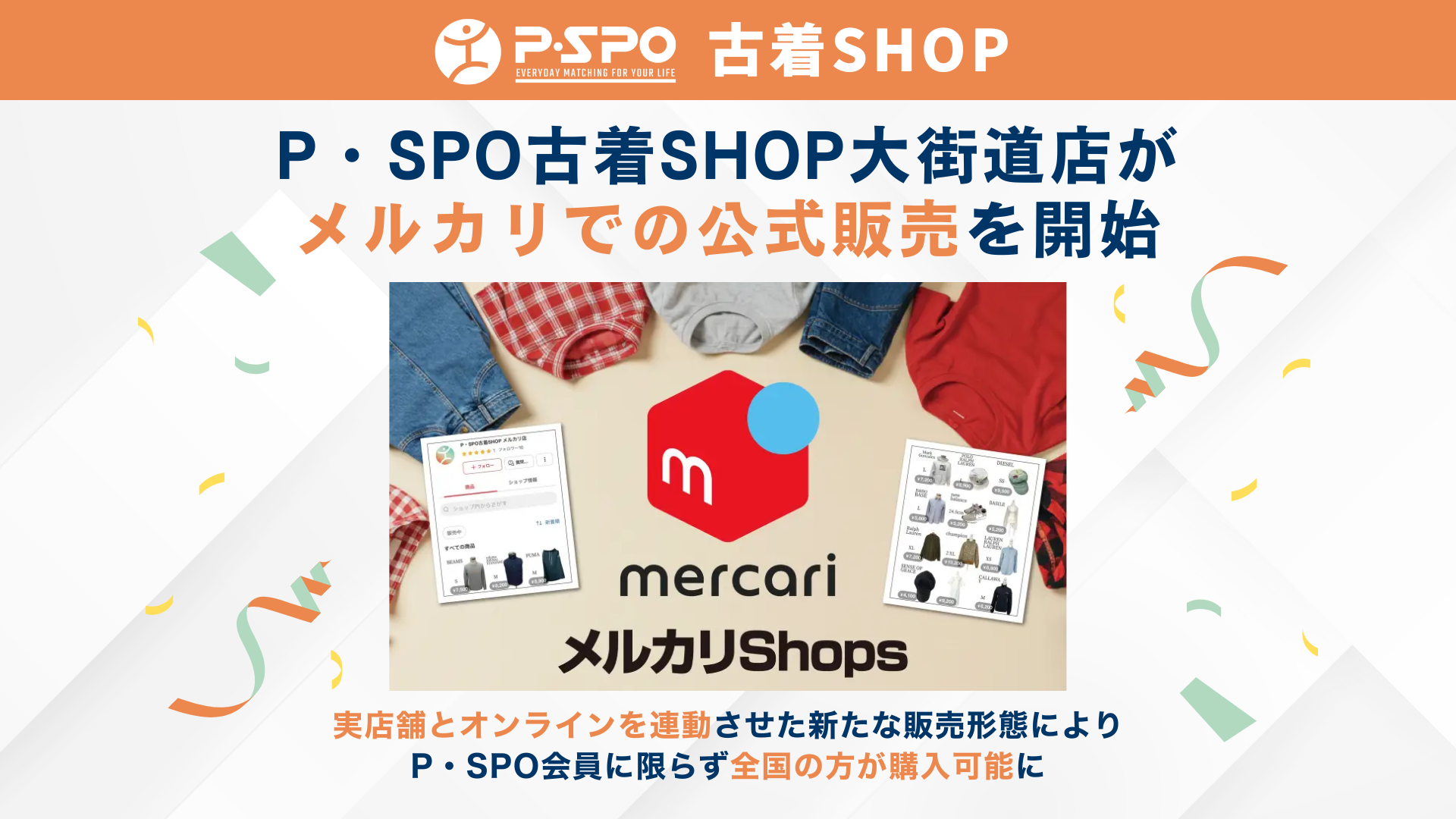P・SPO古着SHOP 大街道店では、人気フリマアプリ「メルカリ」での公式販売を開始し、実店舗とオンラインを連動させた新しい販売体制へと拡張いたしました。