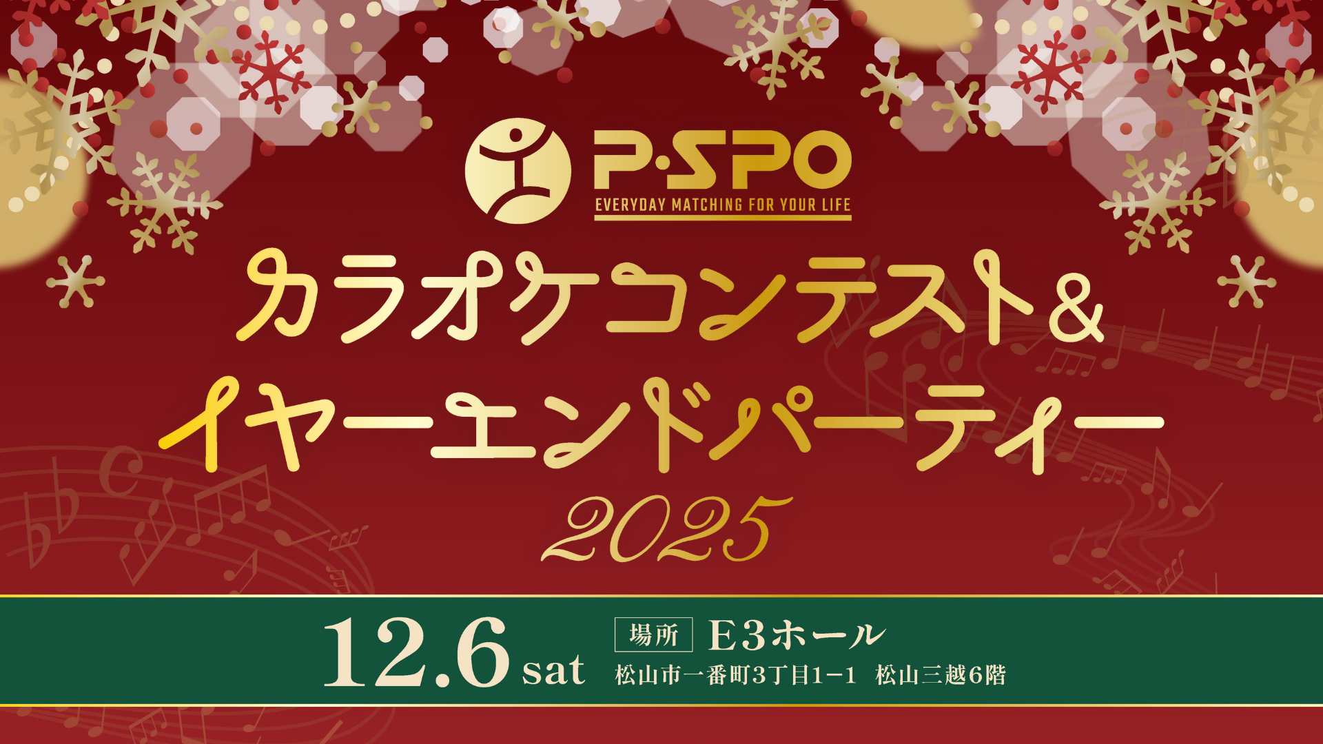 P・SPOでは、今年の締めくくりイベント「P・SPOカラオケコンテスト&イヤーエンドパーティー2025」を12月6日(土)に開催いたします。