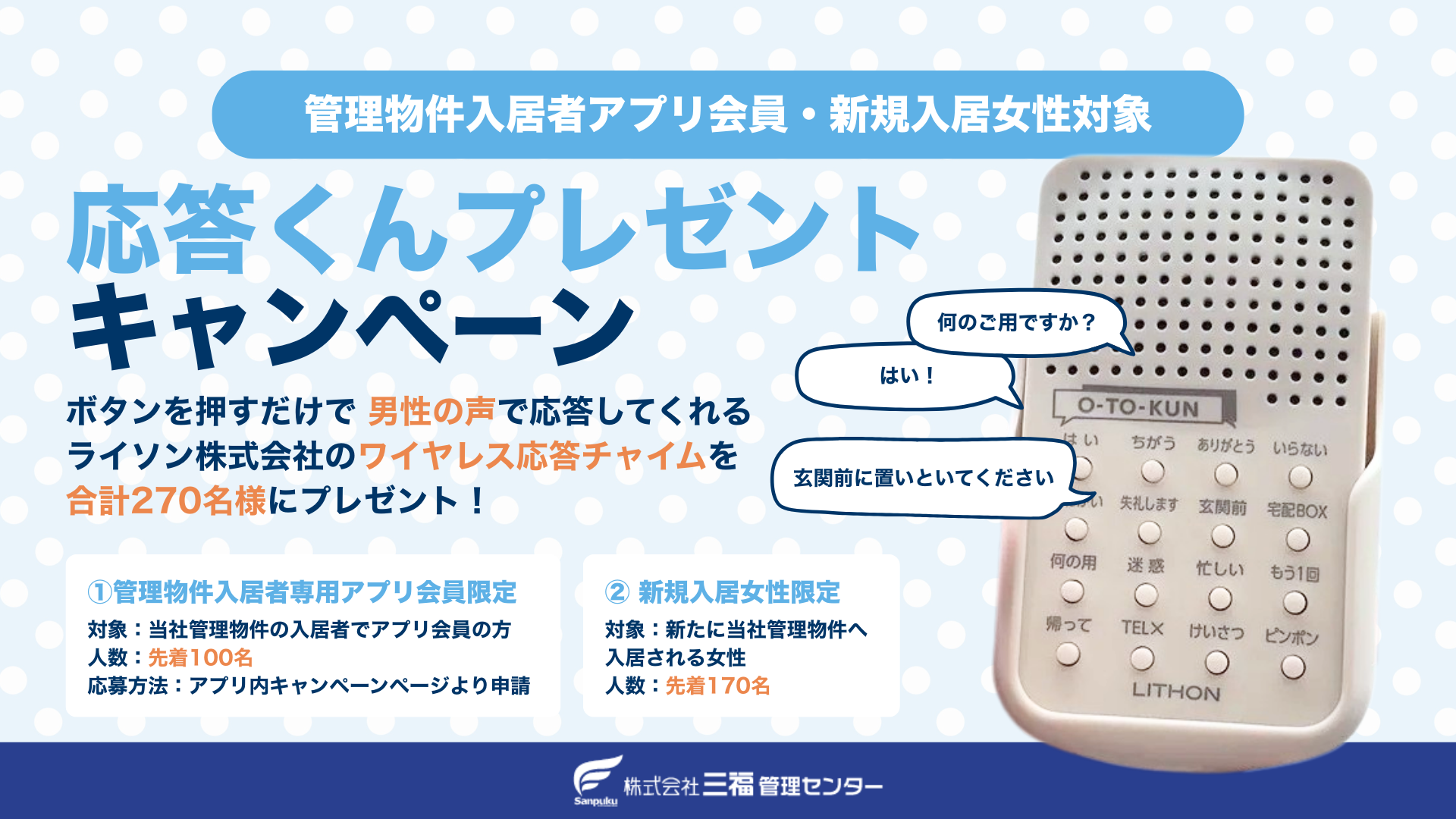 三福管理センター 管理物件入居者アプリ会員・新規入居女性を対象に「応答くんプレゼントキャンペーン」実施