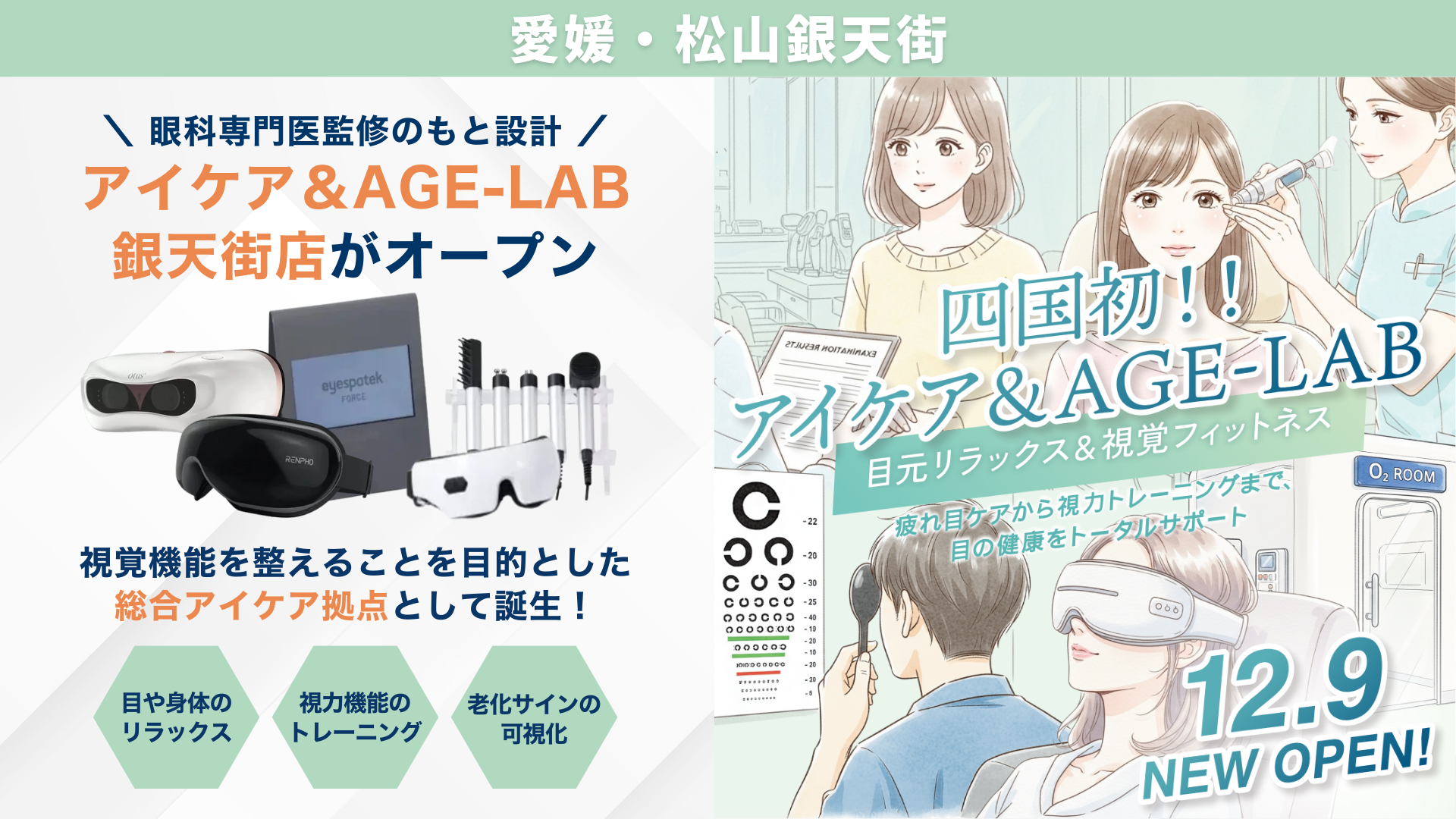松山・銀天街に視覚機能を整える総合アイケア施設「アイケア&AGE-LAB 銀天街店」がオープンしました。