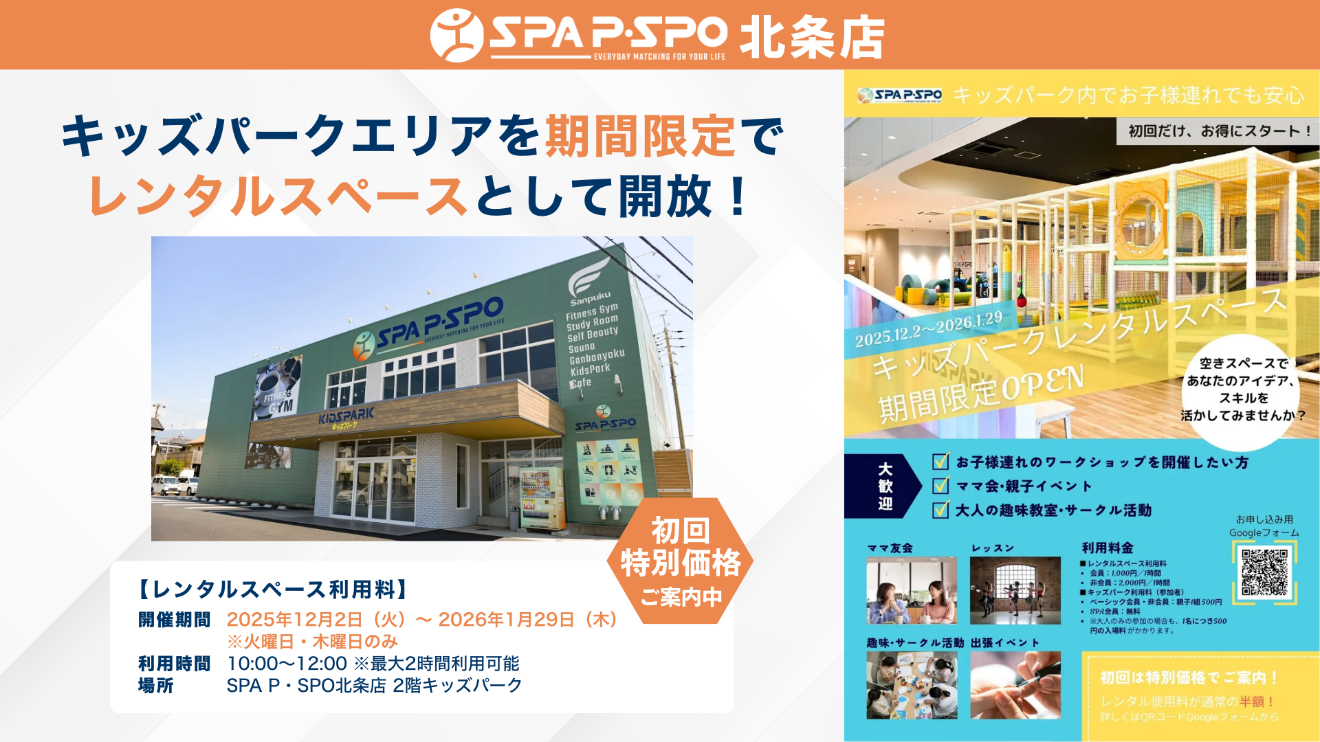 SPA P・SPO北条店、キッズパークエリアを期間限定でレンタルスペースとして開放