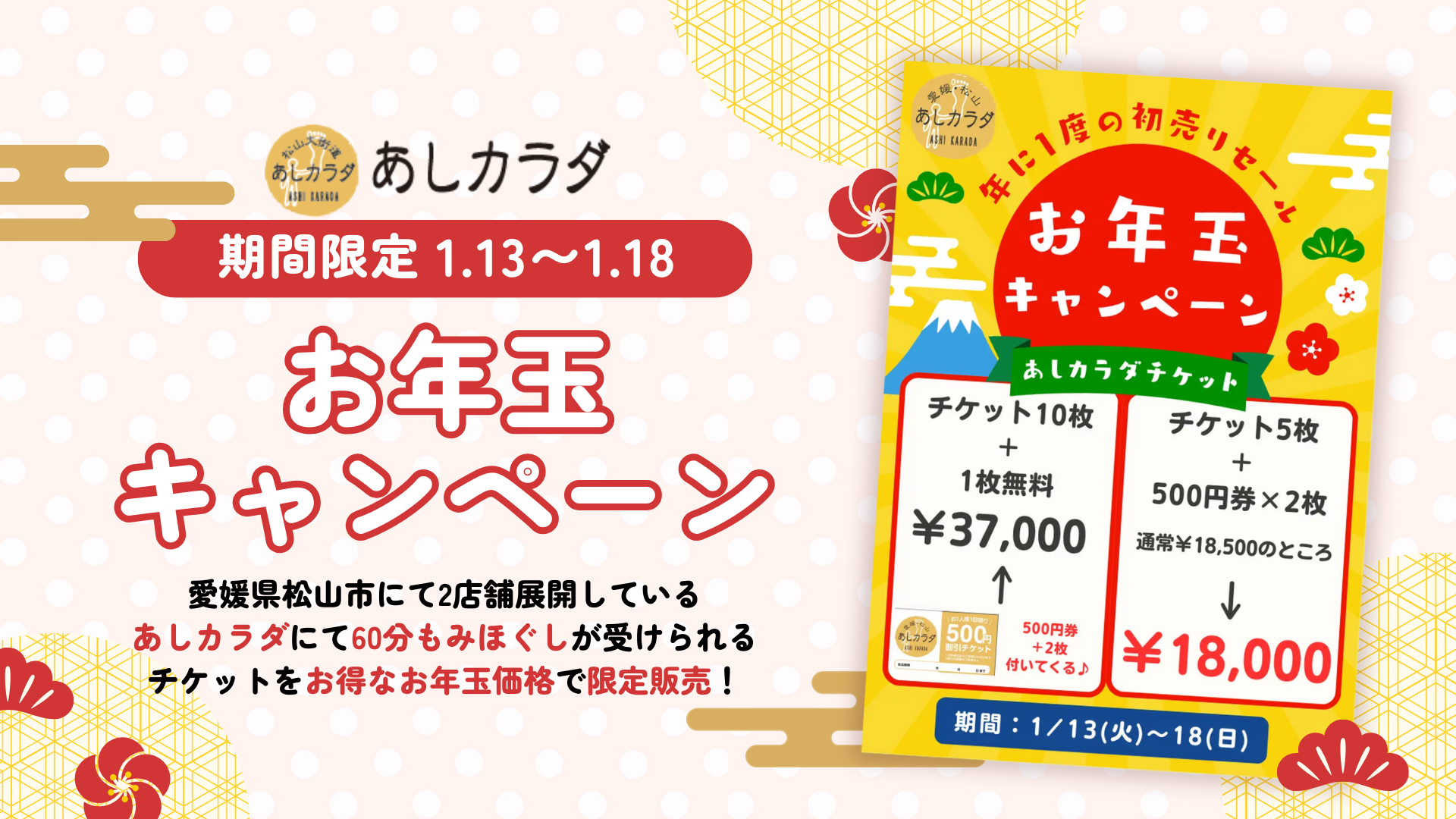 松山市のリラクゼーションサロン「あしカラダ」では、1月13日(火)〜18日(日)の6日間、