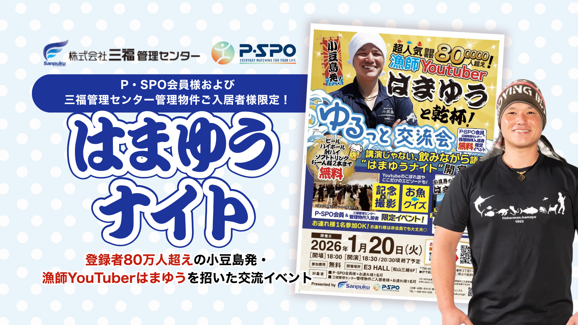 対 象:P・SPO会員さま、三福管理センター管理物件ご入居者さま(同伴1名まで可)