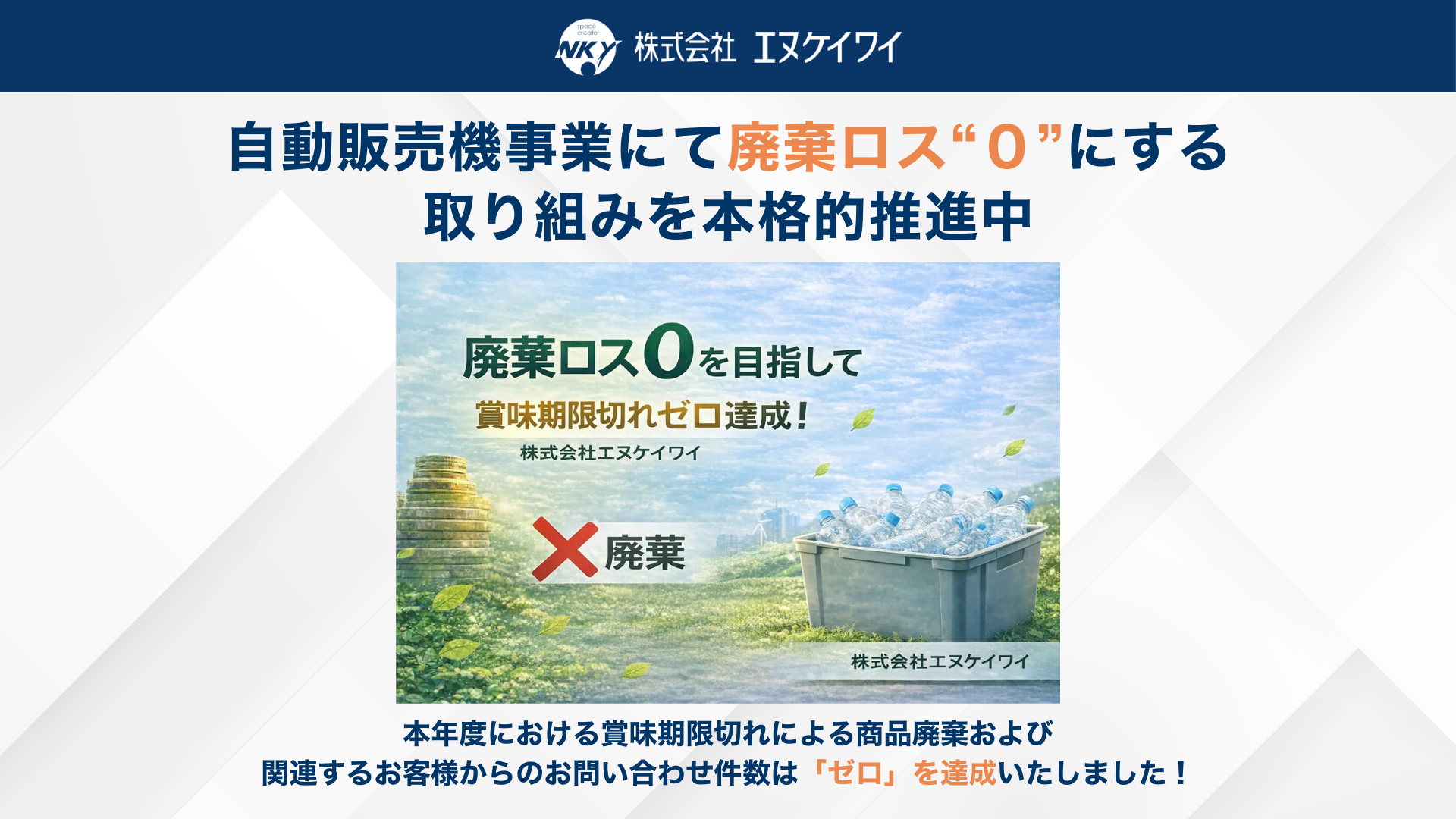 三福グループの株式会社エヌケイワイは、飲料自販機の運営で賞味期限切れによる廃棄ゼロと、