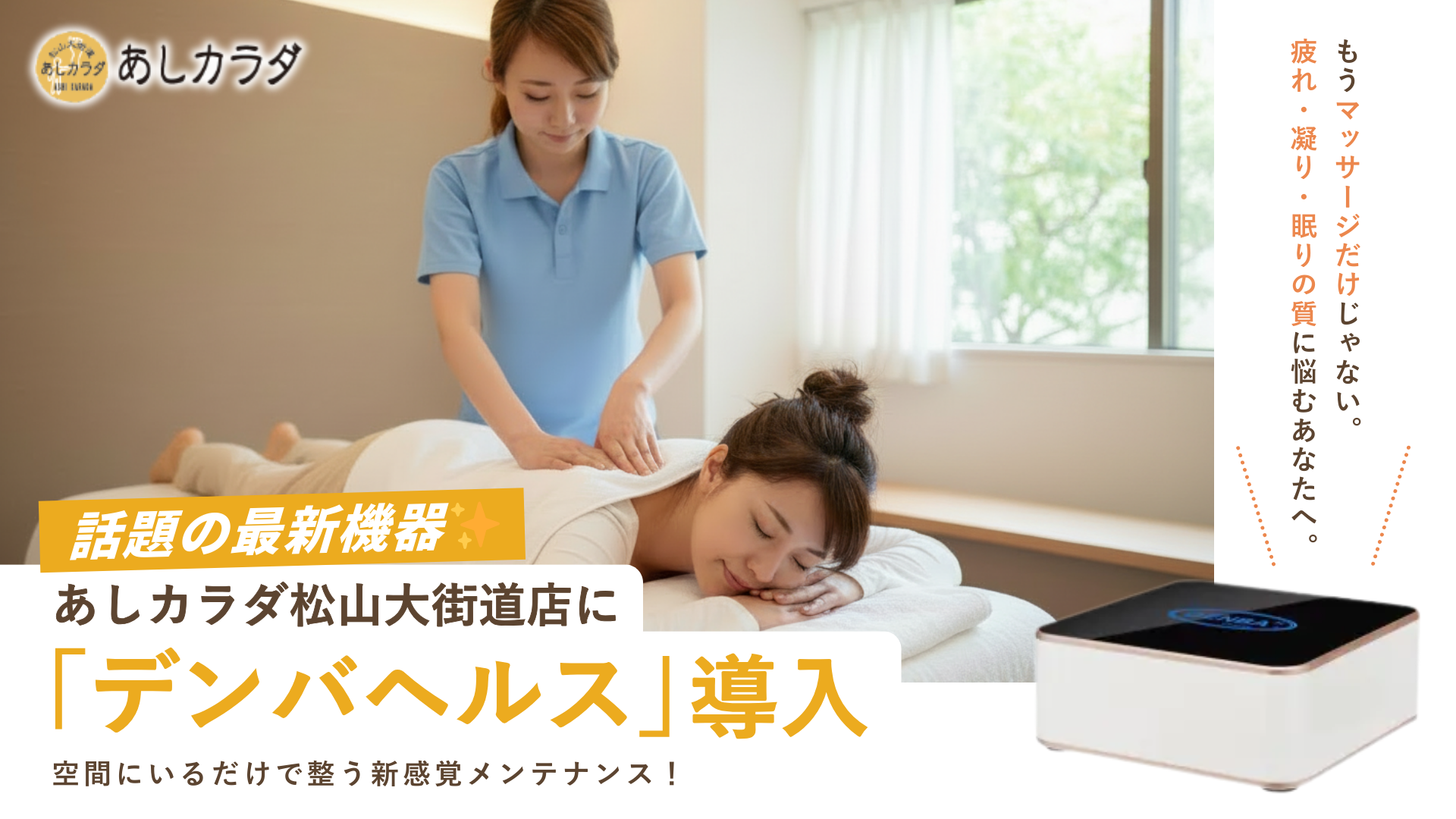 リラクゼーションサロン「あしカラダ松山大街道店」に、話題の次世代機器「デンバヘルス」を導入しました。