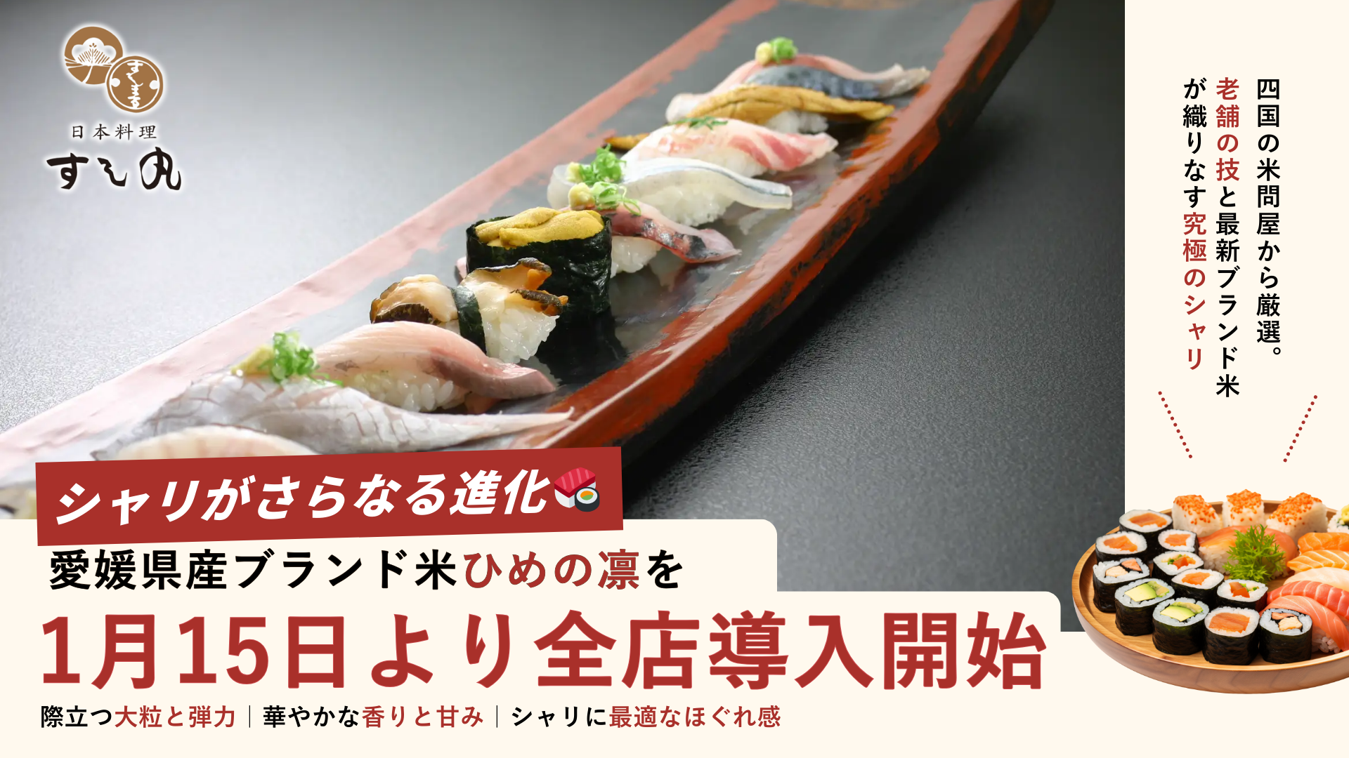 【昭和23年創業の老舗 すし丸】愛媛県産ブランド米「ひめの凛」を2026/1/15より全店で導入開始