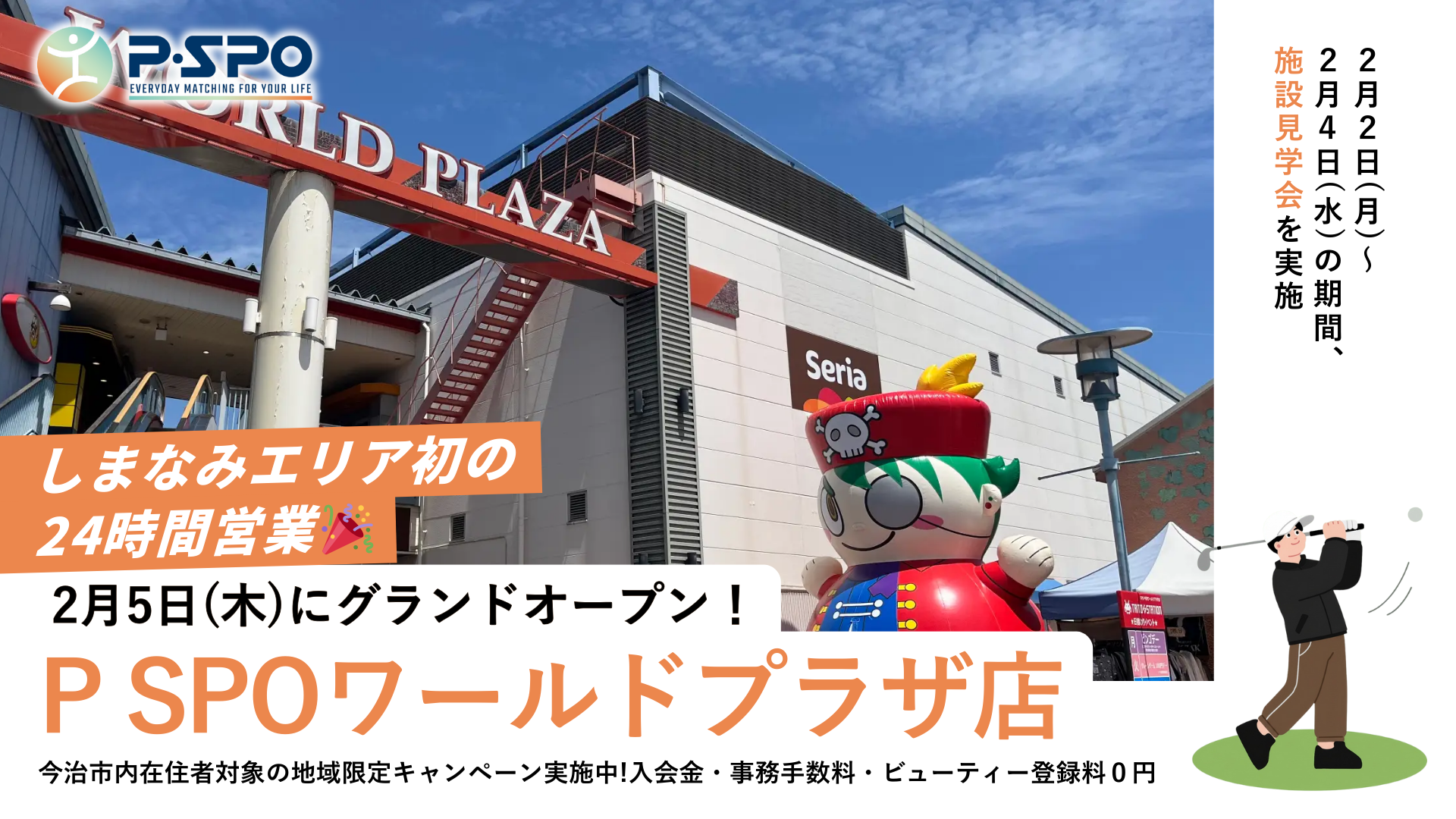 P・SPOは、今治市の商業施設「今治ワールドプラザ」内にP・SPO ワールドプラザ店を2月5日(木)にグランドオープンします。
