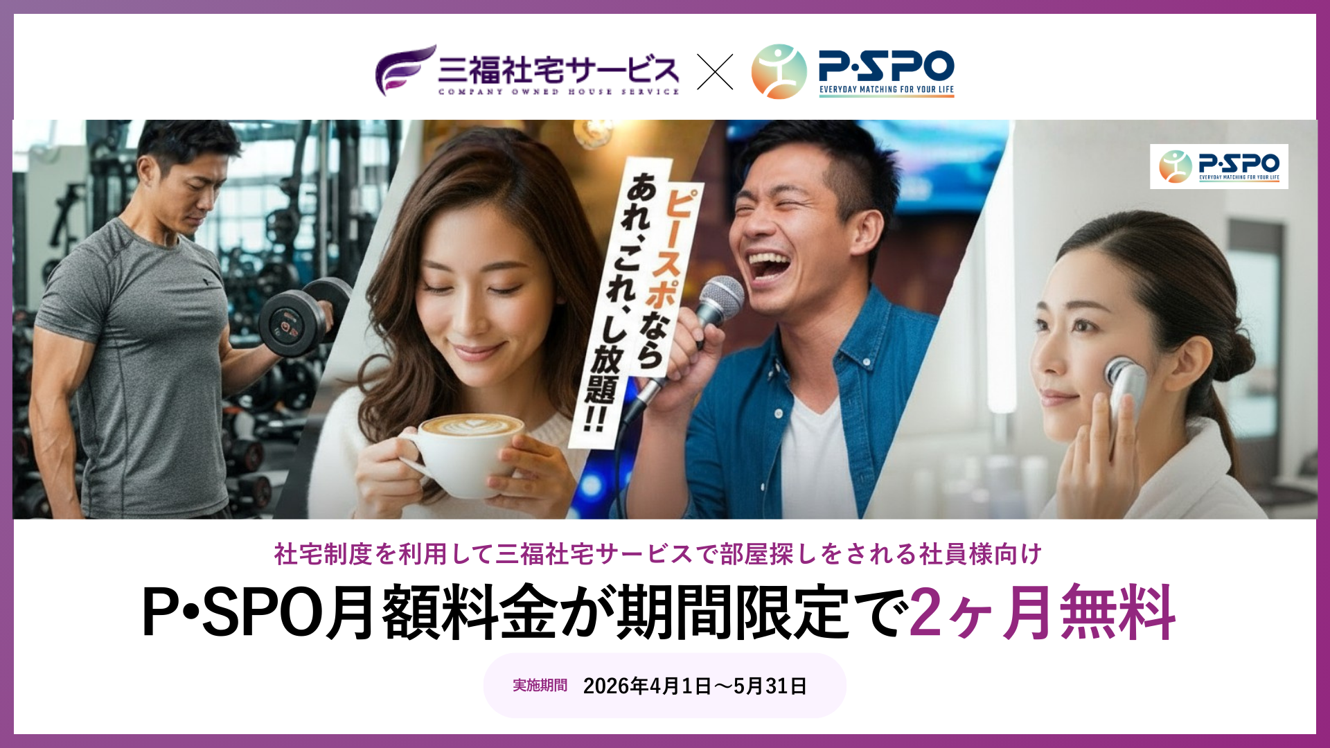 三福社宅サービスでは「P・SPO(ピースポ)」と連携し、期間限定のコラボキャンペーンを実施いたします。