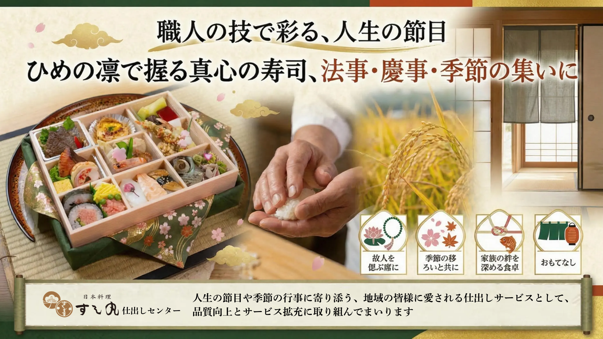 今後もすし丸では地域の皆さまの人生の節目や季節の行事に寄り添い「大切な時間に寄り添う仕出し」を目指してサービス向上に取り組んでまいります。