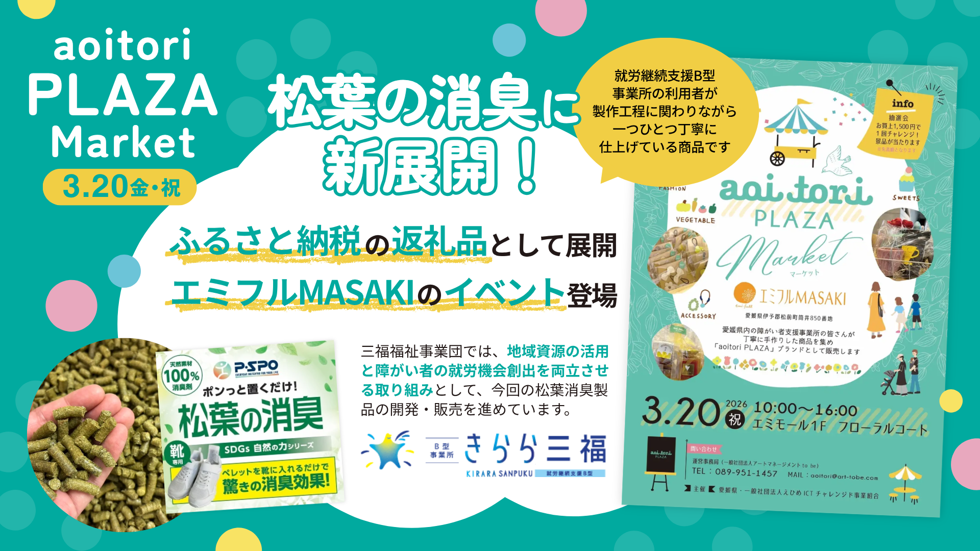 「 松葉の消臭 」に新展開! 天然素材100%の消臭製品が、ふるさと納税&エミフルMASAKIのイベントに登場!