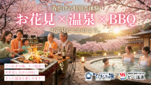 南道後温泉ていれぎの湯とSPA P・SPO 湯砥里館 とべ温泉では、お花見・温泉・BBQ・花見弁当を組み合わせた春の過ごし方をご提案しています。