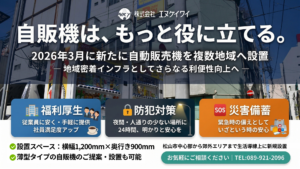 株式会社エヌケイワイは2026年3月、松山市内および近郊エリアに新たに9台の自動販売機を設置しました。